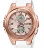 G-MS model MSG-C100G-7A. Rose gold plated steel case. Ana-digital display. Shock resistance. World Time. White rubber band. Water resistant to 100 meters