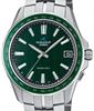 Oceanus Manta series model OCW-S400-3AJF. Pure titanium case and bracelet. Sapphire crystal with anti-glare coating. Water resistant to 100 meters. Textured green dial. World time bezel with green sapphire glass cover. Tough solar. Multi-Band 6. Bluetooth connected.