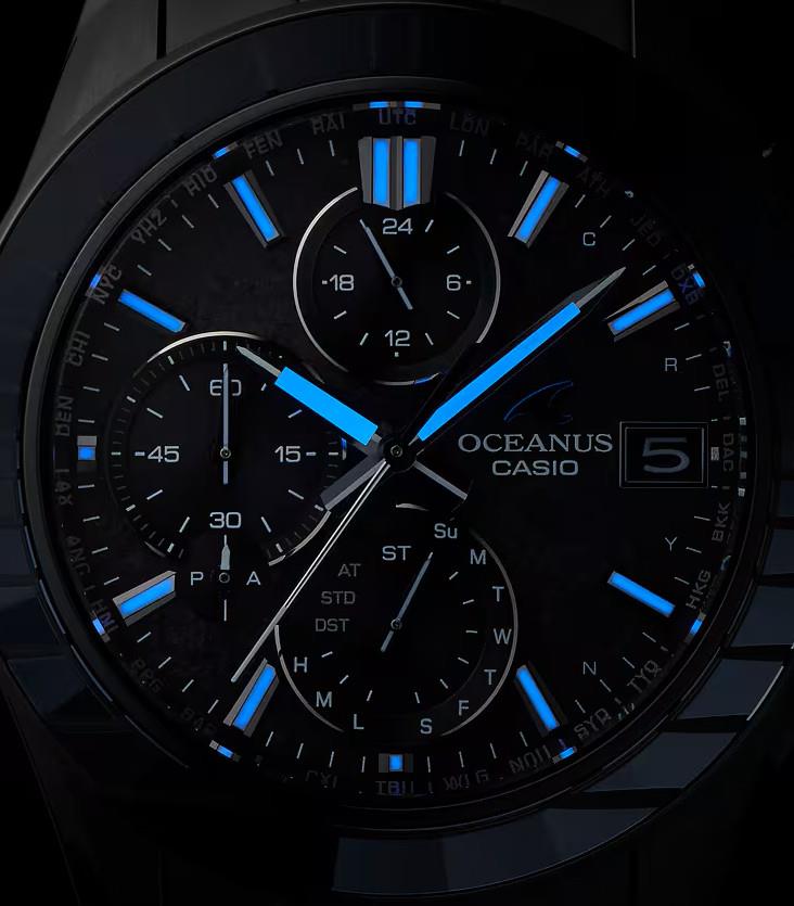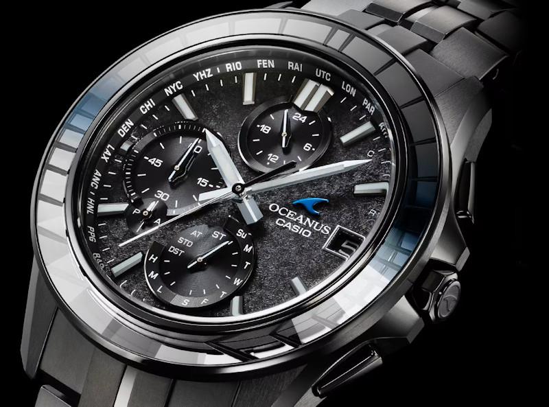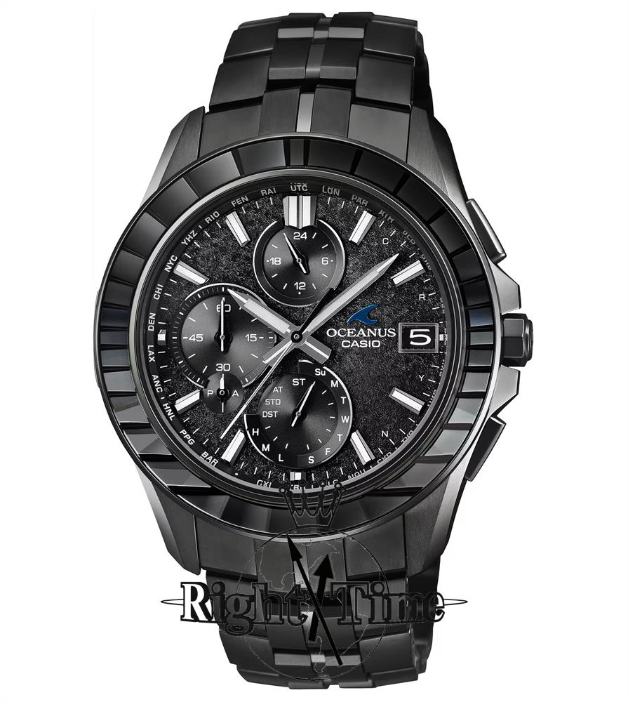 Casio Oceanus Manta S7000 Series model OCWS7000CN1A. This stunning "Calm Night" design is limited to 1600 pieces Worldwide. Black color DLC coated titanium case and bracelet. Edo Kiriko style hand-cut sapphire bezel. Black color textured metallic dial. Dual curved sapphire crystal with a/r coating. Water resistant to 100 meters.