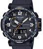 Casio PROTREK solar powered model PRW6600Y-1A9 with Atomic Timekeeping technology. 3 Triple Sensors: Altimeter/Barometer, Thermometer and Compass. Black case, black rubber band and dial. Analog-Digital display.