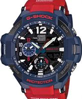 Casio G-Shock GX-56 Series. G-SHOCK model GX56BBR-1. Black case and band. Red dial. Tough Solar. Shock Resistant. Mud Resistant. Full Auto EL Backlight with Afterglow. 200 meters water resistant