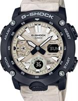 Casio G-Shock GMA-P2100PC-7A. Dubbed the "CasiOak" due to the octagonal bezels resemblance to the famous "Royal Oak" from Audemars Piguet. New smaller size white resin case and band, reinforced with carbon fibers for extra toughness. Silver dial. Features include stopwatch, count-down timer, world time, and a built-in LED. Water resistant to 200 meters.
