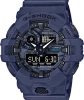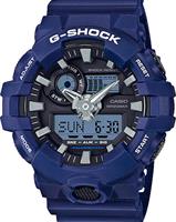 G-Shock GA700HDS-7A by Casio. White case. White 3-D dial with blue color accents. White band. Shock Resistant. Front-Button Super Illuminator Light. 200 Meter Water Resistant.