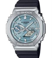 Casio G-Shock GMA-P2100PC-4A. Dubbed the "CasiOak" due to the octagonal bezels resemblance to the famous "Royal Oak" from Audemars Piguet. New smaller size blush resin case and band, reinforced with carbon fibers for extra toughness. Silver dial. Features include stopwatch, count-down timer, world time, and a built-in LED. Water resistant to 200 meters.