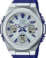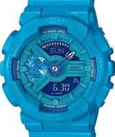 Baby-G by Casio. Digital and analog blue dial. Blue case and resin band. 100 meters water resistant. LED-Backlight