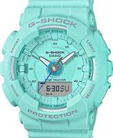 G-Shock S Series model GMAS140PP-4A. Watch motif resembles a 90`s stereo component device or portable music player that has been updated to a modern refined look.
