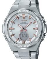 Baby-G by Casio. Digital and analog silver tone dial. Silver tone case and resin band. 100 meters water resistant. LED-Backlight