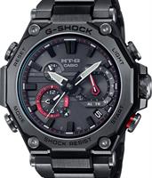 MT-G Connected by Casio G-Shock. Model MTGB1000XBD-1. Black PVD plated steel case with red color accents. Black rubber band. Black carbon fiber bezel. Black color dial with red color accents. 2-way Time Sync (BLE/MB6). BLE Connected. Super Illuminator. New Band/Case Structure. Sapphire crystal