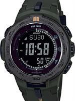Solar Powered Casio ProTrek model PRG340B-3 featuring Compass, Altimeter, Barometer, Temperature sensors and many more. Green case and band. Digital display. 100m water resistant