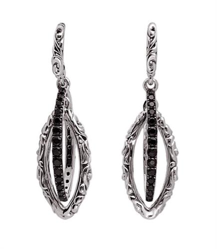 Charles Krypell Sterling Silver Earring. 25mm 58 black sapphires 2.00cts