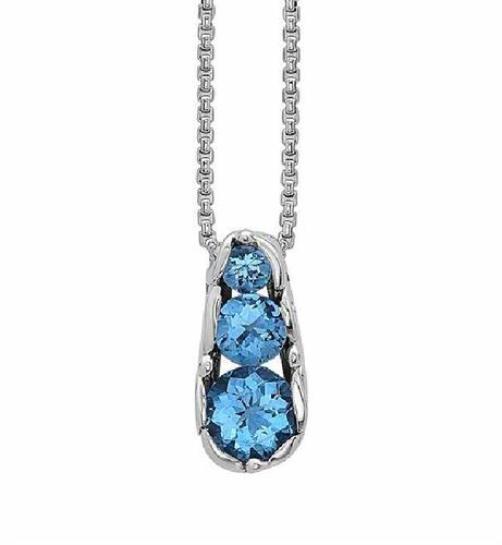 Charles Krypell sterling silver pendant necklace with 3 blue topaz round stones: 4mm, 6mm, 8mm. Comes on a 17" chain.