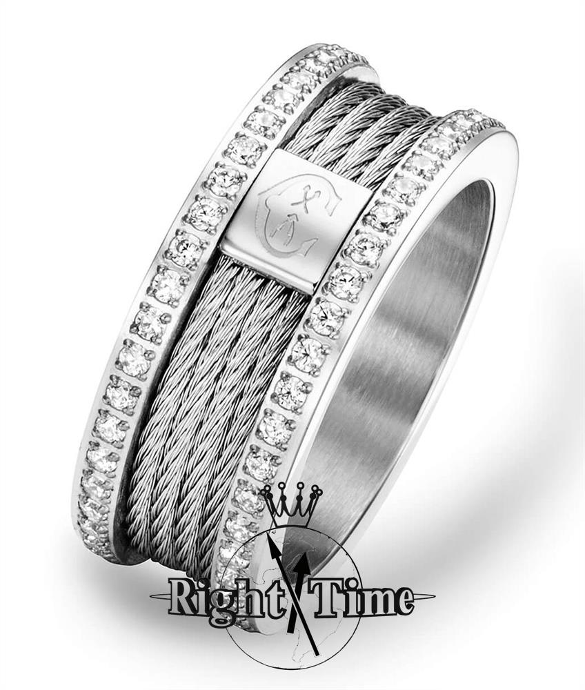 Charriol Forever Magnifique Ring model 02-04-00143-M. Steel. 88 Zirconia Stones. Size 6.75
