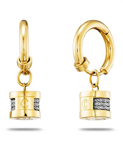 Charriol Forever Minis Earrings model 03-104-1139-40. Steel yellow gold PVD plated and steel cable.