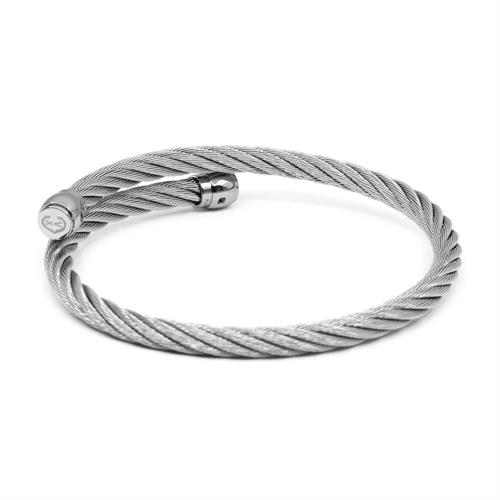 Charriol Celtic SCEAU Bangle Icon Heritage model 04-101-00144-1-L. Size L. Round 4mm steel cable with end caps emblazoned with the Charriol `C` symbol.