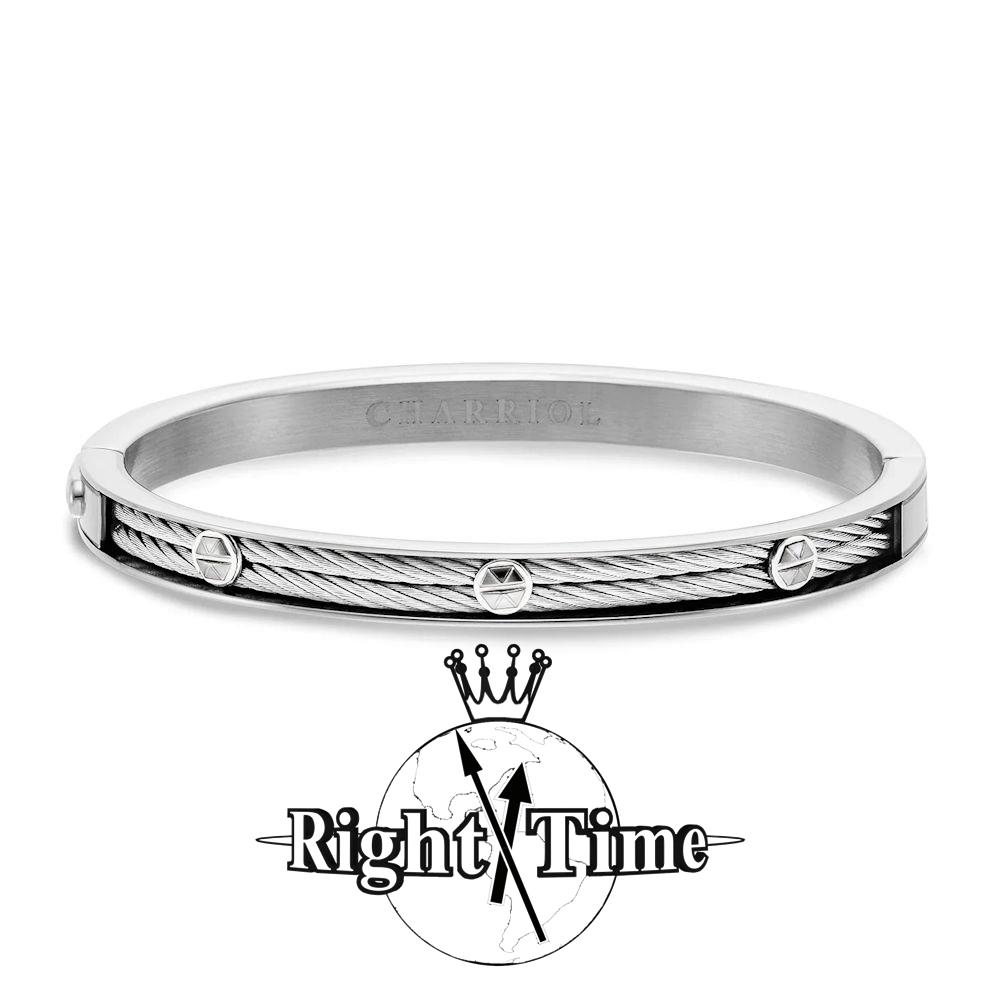 Charriol Forever Eternity bangle with thin screws model 04-101-1139-27-M. Size M. Stainless steel with 2x 1mm steel cable