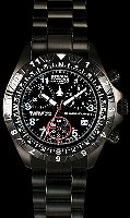 Chase-Durer 146.4BB4-BR12 Special Forces Air Assault Team Chronograph watch with two time zones. Swiss made chronograph with 22 jewels Swiss ETA 251.272 quartz chronograph movement with date calendar, black PVD solid 316L stainless steel case, unidirectional bezel with 12-hour dual time zone and 360 degree compass heading marker, screw-down crown with shoulder guard, black color dial with Superluminova illumination system on hands and Arabic numerals, black PVD solid 316L stainless steel watch bracelet with double lock security clasp. 100m water resistance. Serial numbered.