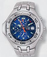 CITIZEN Japanese Quartz Analog ( Battery powered ). Date calendar, window display. Underwater Depth Display up to 125 feet. 50 minute recorder chronograph.