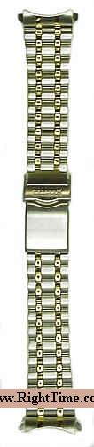 Solid Stainless steel. Gold electroplated accents. 21mm width at the case end piece.