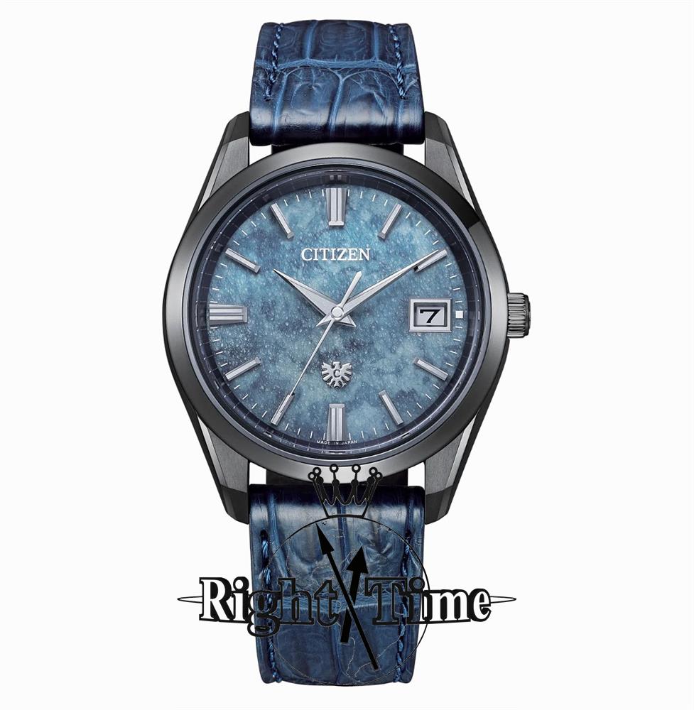 Citizen Super Titanium. Limited to 300 unnumbered pieces worldwide. Model AQ4106-26L powered by Citizen Eco-drive Caliber A060 movement. Blue Murakumo dyed Washi paper dial that emulates clouds, creating a captivating interplay between light, texture. Grey PVD plated titanium case. Water resistant to 100 meters. Comes on a blue crocodile strap