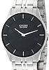 Citizen Stiletto Eco-drive watch. Round slim stainless steel case with bracelet, black textured dial.