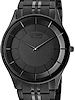 Citizen Stiletto Eco-drive watch AR3015-53E. Round black plated stainless steel case with bracelet, black dial with black hands and black indexes, sapphire crystal.