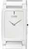 Citizen Stiletto Blade Eco-drive watch AR3040-56A. Rectangular ultra-slim white ceramic case with bracelet. White dial, sapphire crystal.