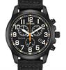 Citizen Eco-Drive 100 meters water resistant watch powered by quartz chronograph movement. Satin finished black stainless steel case. Black dial with large Arabic markers. Military black nylon strap