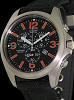 Citizen Eco-Drive 200 meters water resistant watch powered by quartz chronograph movement. Satin finished titanium case. Black dial with large orange color luminous markers. Black nylon strap