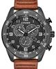 Citizen watch model AT2447-01E powered by Eco-Drive chronograph movement. Black IP-plated stainless steel case with brown leather strap. Black color dial with date calendar and 24-hours sub-dial. Water resistant to 100 meters