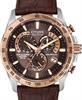 Citizen Eco-Drive radio Limited Edition Perpetual Chrono watch model AT4001-00X. Radio Controlled. US Travel friendly, pull crown out half way and change cities. Brown textured photocell dial. Applied gold tone markers with luminous fill. 660ft water resistant. Stainless steel case with brown leather strap, sapphire crystal.