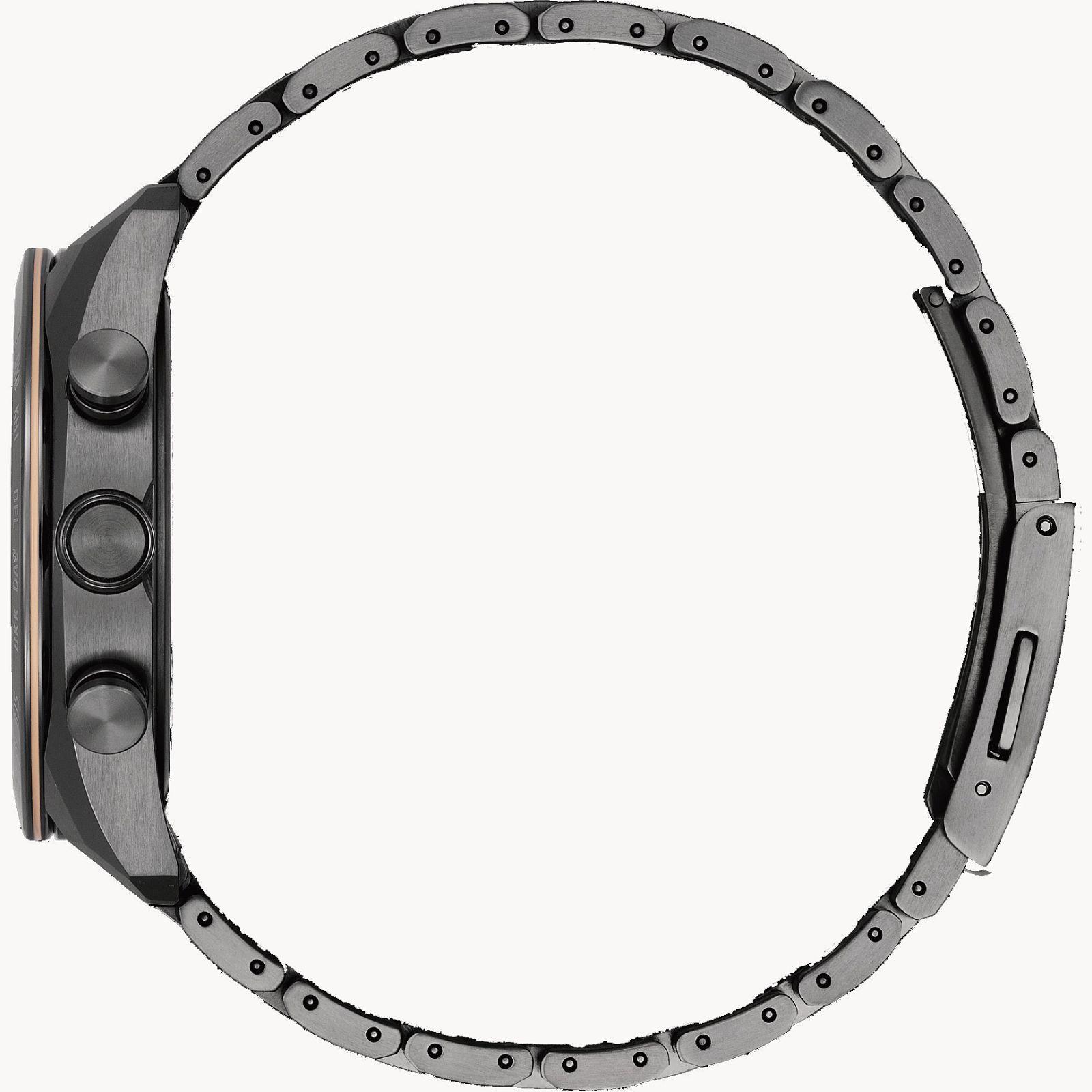 Created in a celebration of Citizen`s partnership with HAKUTO-R, a Japanese lunar exploration project with plans to launch an expedition to the moon. Eco-Drive Radio-Controlled Chronograph movement. Atomic timekeeping in 40 time zones, 1/10-second chronograph measures up to 60 minutes, perpetual calendar, 12/24-hour time, date calendar. Black titanium case and bracelet. Sapphire crystal. Dial consist of several layers to create a three-dimensional look that imitate the surface of the moon. Limited to 1600 pieces worldwide