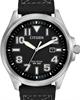 Citizen watch powered by Eco-Drive movement. Stainless steel case with black nylon strap. Black color dial with date and large luminous hands and markers. 200 meters water resistant