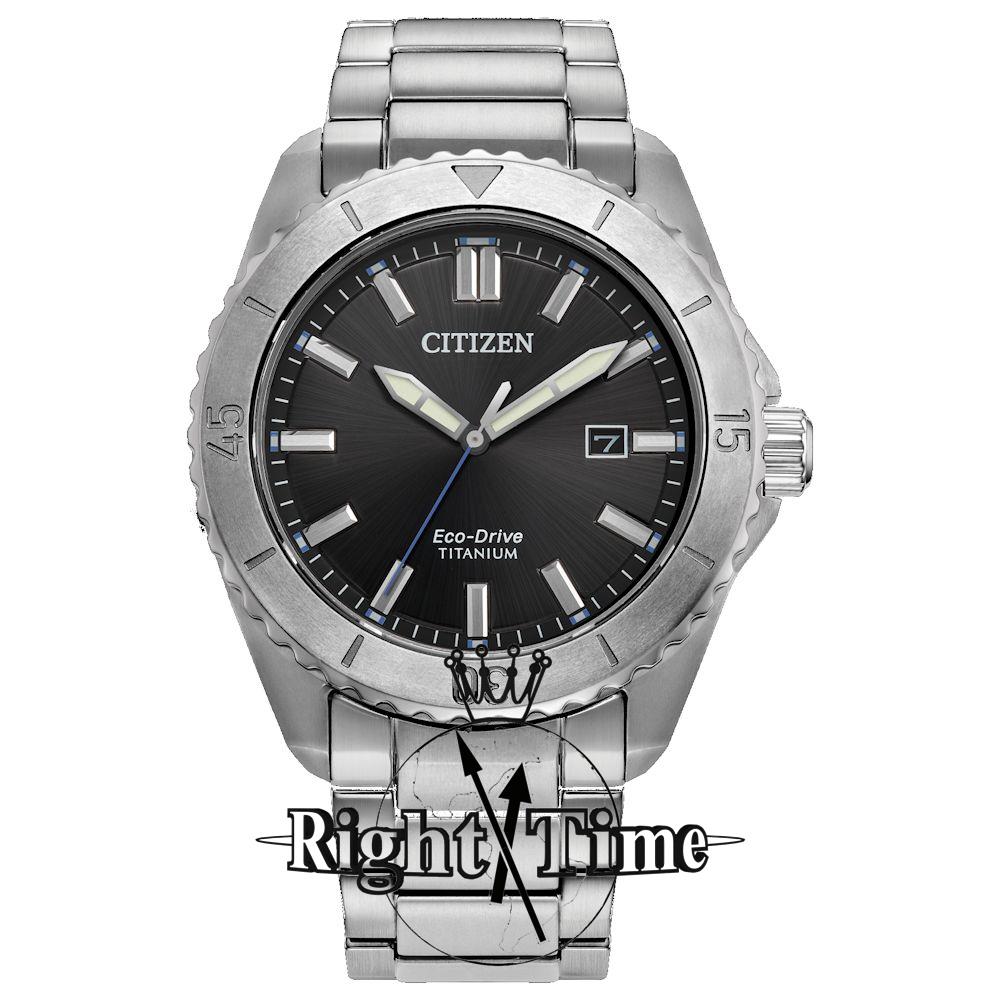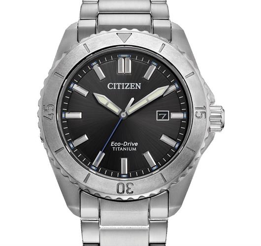 Citizen Brycen Eco-Drive watch model AW1840-50E. Titanium case and bracelet. Black color dial with date.