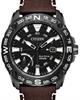 Citizen PRT model AW7045-09E. Solar powered Eco-Drive. Stainless steel case with black PVD coating. Black dial with power reserve indicator. Black rotating bezel with compass ring. Brown leather strap with white stitch.