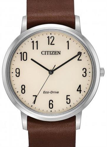 Citizen model BJ6500-21A. From the Chandler collection. Stainless steel polished case. Parchment white dial. Leather NATO strap. Eco-Drive solar powered.