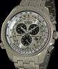Citizen chronograph with alarm and dual time, powered by light. Sliding E6b ruler inner bezel. 200m water resistant. Perpetual calendar and stopwatch. Large 46mm steel case with bracelet
