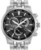 Citizen perpetual calendar model BL8140-55E. Famous caliber 8700. Eco-drive rechargeable battery. Black dial, stainless steel case and watch bracelet. Functions: Perpetual Calendar; Alarm; Dual Time; 24 hours sub-dial; Month-Day-Date calendar