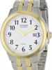 Citizen BM7094-50A wrist watch. Stainless steel case and bracelet with gold plated accents. White textured dial with date and Arabic numerals.