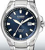 Citizen Eco-Drive 100 meters water resistant watch powered by Eco-Drive movement. Titanium case and bracelet. Sapphire crystal. Blue color dial.
