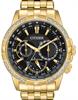 Citizen Men`s Eco-Drive Calendrier watch model BU2082-56E. Yellow gold plated stainless steel case and bracelet. Diamonds on the bezel. Black dial with gold tone hands and markers, day and date sub-dials, 12/24 hour time, world time in 24 time zones. Water Resistant 100 meters