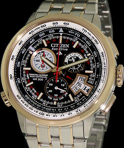Citizen Chrono-Time AT pilot travelling companion, powered by light and set by the atomic signals from all over the world. Sliding E6b ruler inner bezel.200m water resistant. Perpetual calendar and stopwatch.