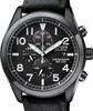 Citizen Men`s Eco-Drive Chronograph watch with black dial, black plated stainless steel case with black nylon strap. Quartz chronograph movement with date and 24-hour hand. 100 meters water resistant.