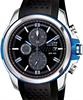 Citizen Men`s Eco-Drive chronograph watch. "Drive" -inspired details. Stainless steel case with rubber band. Quartz chronograph movement. Black dial. Blue color accents. 100 meters water resistant.
