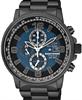 Citizen Men`s Eco-Drive Nighthawk Titanium Chronograph watch with blue/black dial, black plated titanium case and bracelet. Quartz chronograph movement with date and 24-hour hand. 200 meters water resistant.
