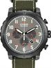 Citizen Military Chronograph watch with CITIZEN Rechargeable by light Eco-Drive Quartz movement. Black dial with orange color accents and Arabic numerals. Stainless steel black plated case, military green nylon band. 100m water resistance.