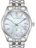 Citizen Eco-Drive radio controlled (from multi-band atomic clocks) perpetual calendar CB0000-57E. Travel friendly, pull crown out half way and change cities. Black textured photocell dial. Applied silver color markers with luminous fill. 660ft water resistant. Stainless steel case and bracelet, sapphire crystal.