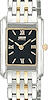 Citizen Stiletto Eco-drive sport style watch for Ladies. Polished and satin finished rectangular stainless steel case and watch bracelet with gold plated accents, black dial with gilt color markers.