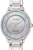 Citizen ladies dress model with quartz movement that never needs a battery - it runs on light! Steel case and bracelet. Mother-of-Pearl dial with sparkling diamonds.