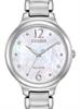 Citizen ladies dress model with quartz movement that never needs a battery - it runs on light! Steel case and bracelet. Sapphire crystal. Mother-of-Pearl white dial.