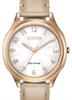 Citizen ladies dress model from Drive Collection. Model EM0753-01A. Powered by quartz movement that never needs a battery - it runs on light! Gold plated steel case with leather strap. Silver color dial.